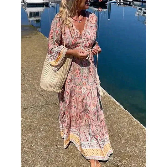 Vanna™ Vintage Dlouhé Šaty s Květinovým Vzorem