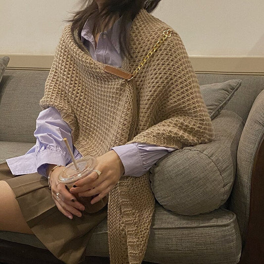 Juliet Moreau™ Pletená trojúhelníková šála s koženou sponou