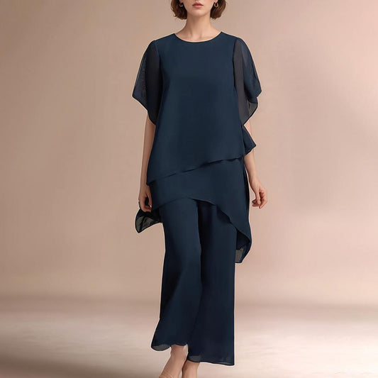 Alice Bari™ Elegantní souprava asymetrického topu a širokých kalhot