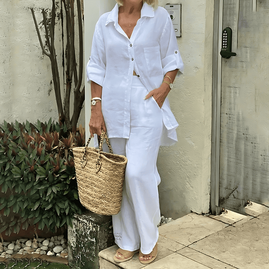 Dione Set™️ Souprava saka a šortek z bavlny a lnu