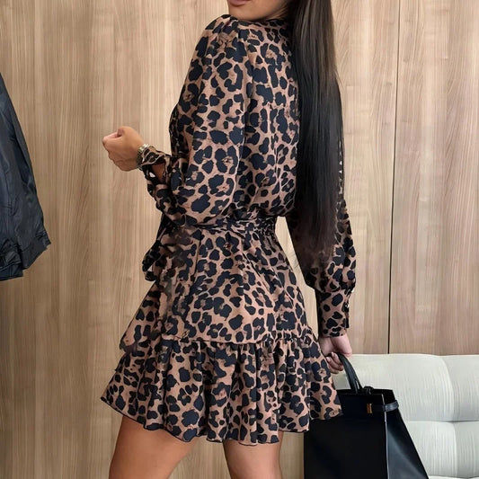Nuccia Ori™ Leopardí zavinovací šaty s výstřihem do V a páskem v pase