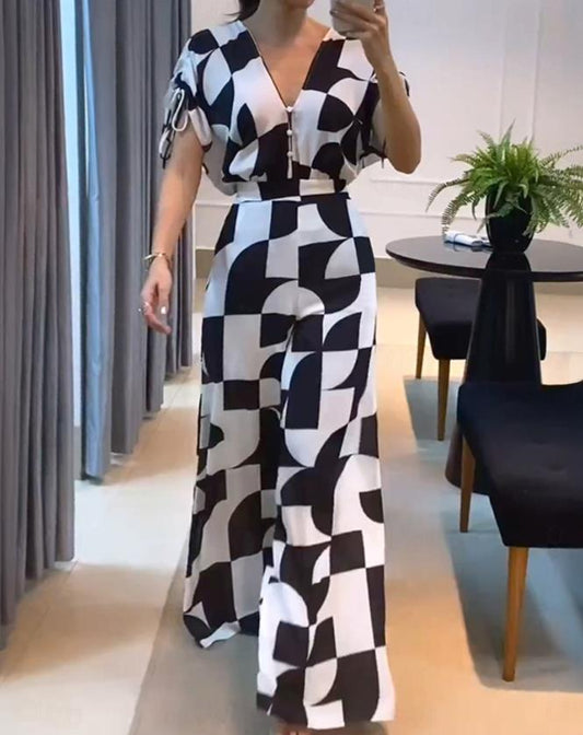 Ave Ajello™ Dámská kombinéza s geometrickým potiskem a širokým výstřihem do V