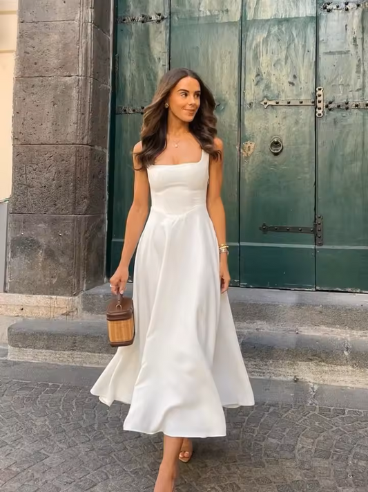 Michela Melino™ Midi šaty s nízkým pasem a čtvercovým výstřihem