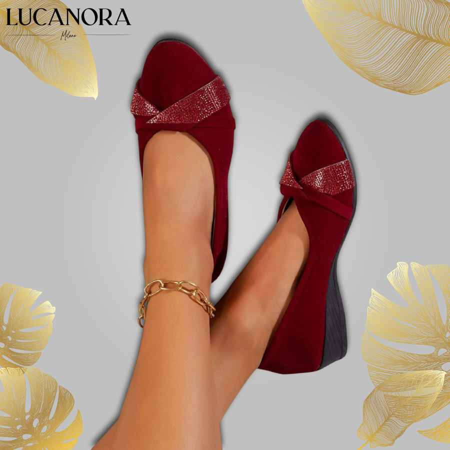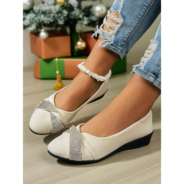 Tyto lehké baleríny vám zajistí celodenní pohodlí i při dlouhých vánočních setkáních a zároveň krásně dotvoří váš outfit. Jemný klínek poskytuje lichotivé zvýšení bez bolesti. Elegantní mašlička dodává nádech svátečního kouzla a měkká vnitřní výstelka zajistí, že každý krok bude měkký, stabilní a neuvěřitelně pohodlný. Ať už odpočíváte, tančíte nebo slavíte, tyto boty vás udrží stylovou a v pohodlí po celý den.