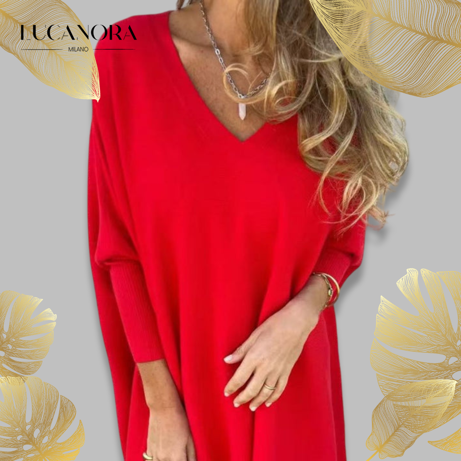 Agata Burgo™ Pletený volný top s dlouhým rukávem a výstřihem do V