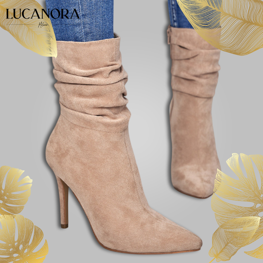 ✔ Elegantní štíhlý vysoký podpatek: Tyto semišové vysoké boty mají štíhlý podpatek, který dodává sofistikovanost a zároveň je pohodlný i při delším nošení.
