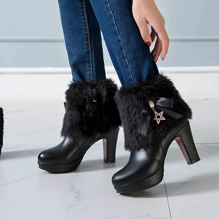 Tyto boty na podpatku vám poskytnou lehkou kombinaci příjemného tepla a městské elegance. Díky robustní konstrukci s tlustou podrážkou a blokovým podpatkem vám tyto boty dodají jemné zvýšení – bez kolísání a jehlových podpatků – zatímco plyšová podšívka udrží vaše prsty v teple i v chladných nocích.
