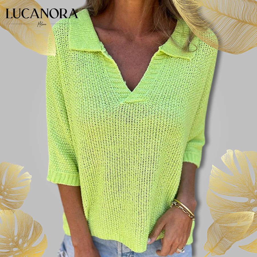Brigitta Prospero™ Stylový pletený top s V-výstřihem a 3/4 rukávem
