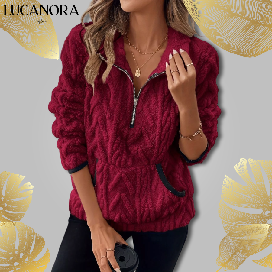 ✔ Stylový poloviční zip – Upravte svůj vzhled během vteřiny zapněte pro teplo, nebo rozepněte pro uvolněný styl, a přidejte tak outfitu moderní nádech.