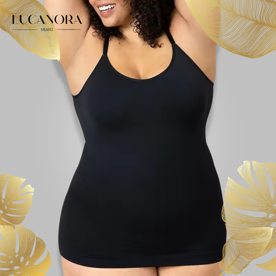 Vyrobený z lehkých, prodyšných materiálů, tento top poskytuje maximální pohodlí a tvaruje vaše břicho a podporuje prsa. Vestavěná podprsenka zvedá a definuje pro hladký, přirozený vzhled, zatímco látka vás udrží svěží po celý den. Ať už se relaxujete doma nebo jdete ven, tento top je vaším ideálním společníkem.