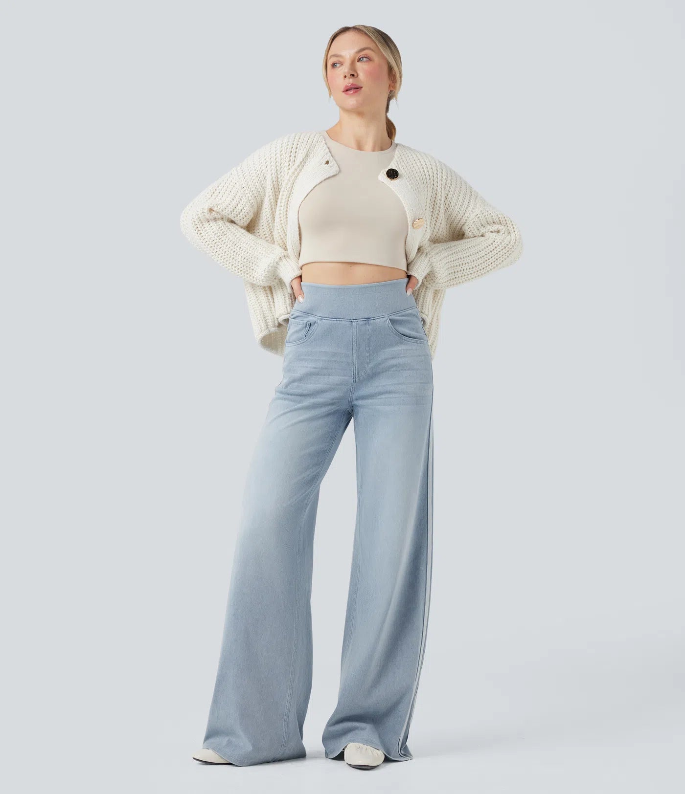 ✔ Ultra-pružný úplet: Zapomeňte na tuhé džíny, které se vám zařezávají do kůže — tyto džíny jsou vyrobeny z pružného úpletu, který se přizpůsobí vašim pohybům. Jemně obepínají vaše křivky, aniž by vás svíraly, takže můžete sedět, chodit, tančit — dělat cokoli — bez pocitu omezení.