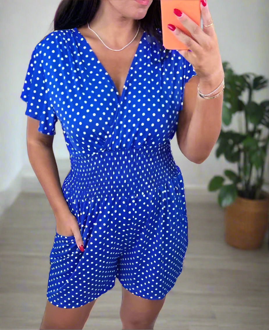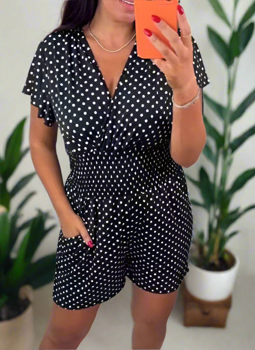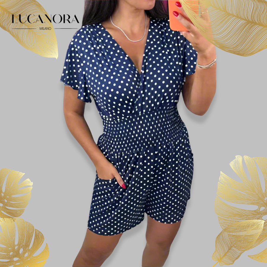 Chiara Porro™ Krátký overal s puntíkovaným výstřihem do V