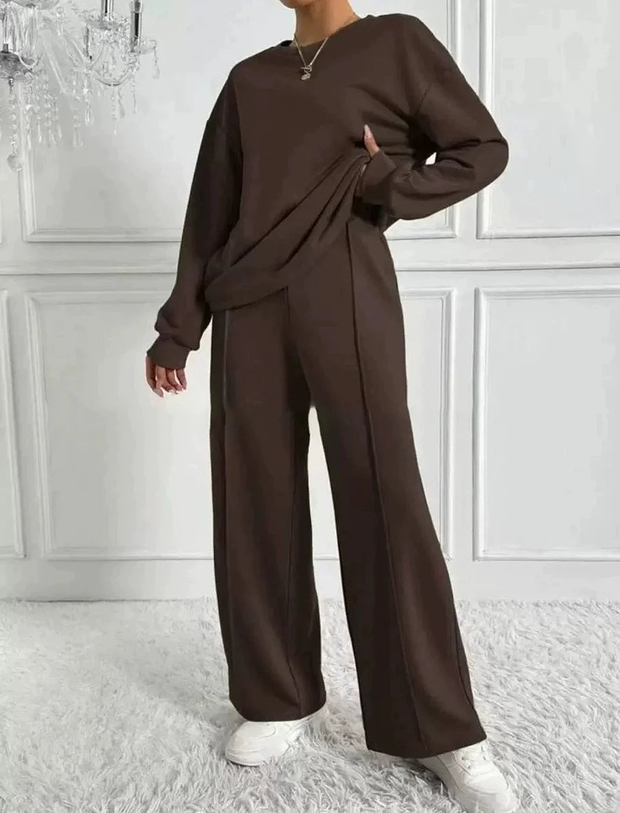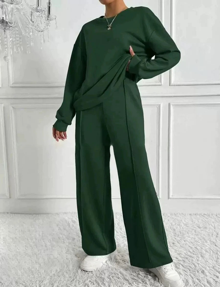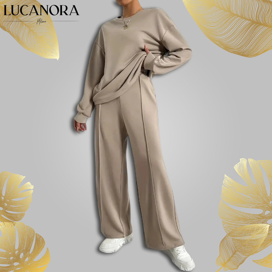 ✔ Chytré designové detaily: Od spadlých ramen po volný střih – navržen tak, aby lichotil bez nepříjemného přilnutí. Dlouhé rukávy vás ochrání před chladným větrem a kalhoty mají komfortní pas, který se nezařezává.