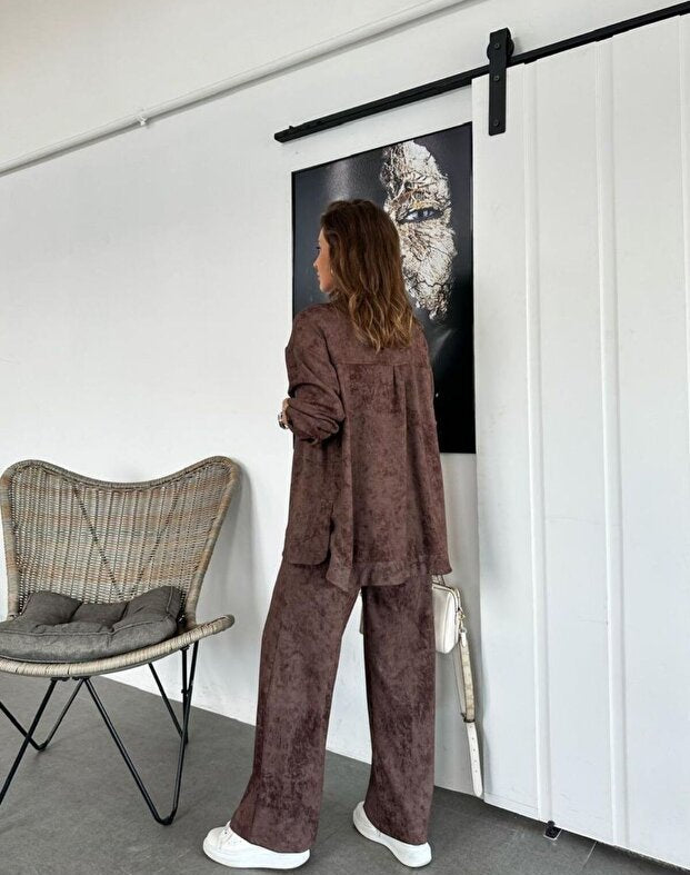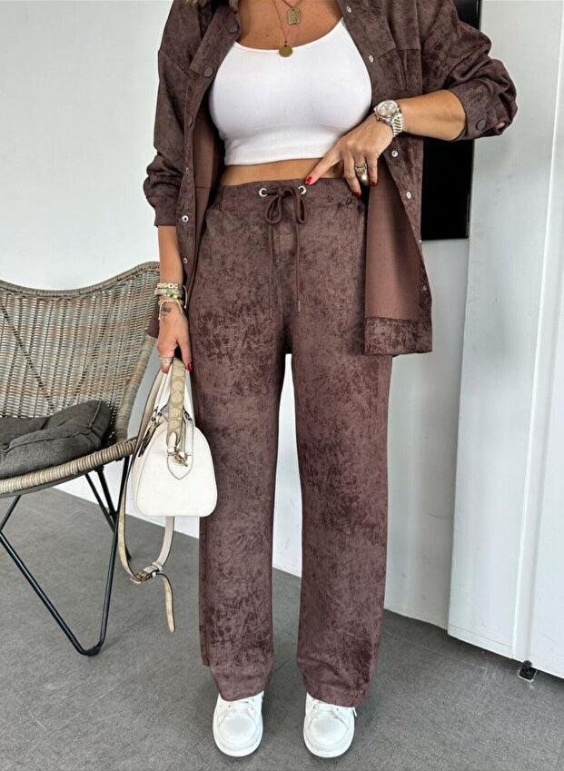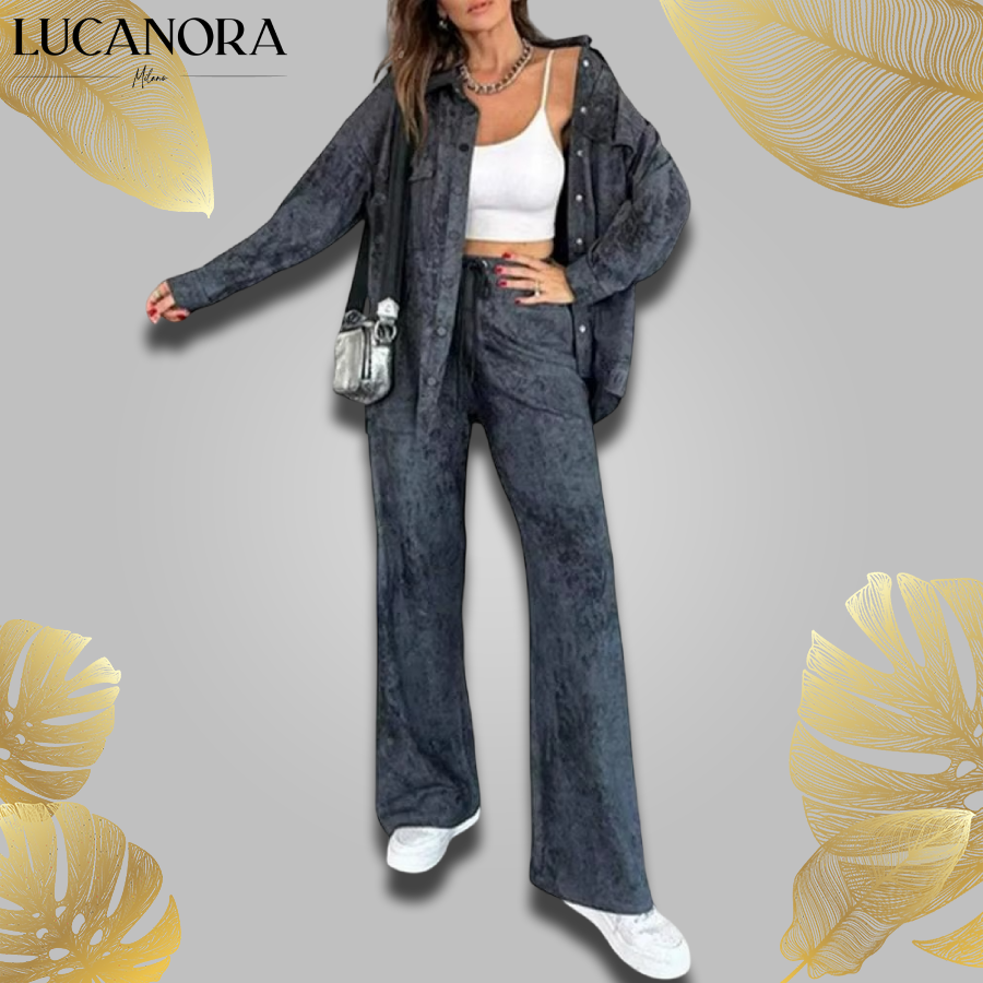 Představte si měkkou látku, která vám umožní volný pohyb a snadné dýchání, kalhoty, které prodlužují vaši siluetu, a set, který můžete nosit společně nebo rozdělit pro maximální využití šatníku.
