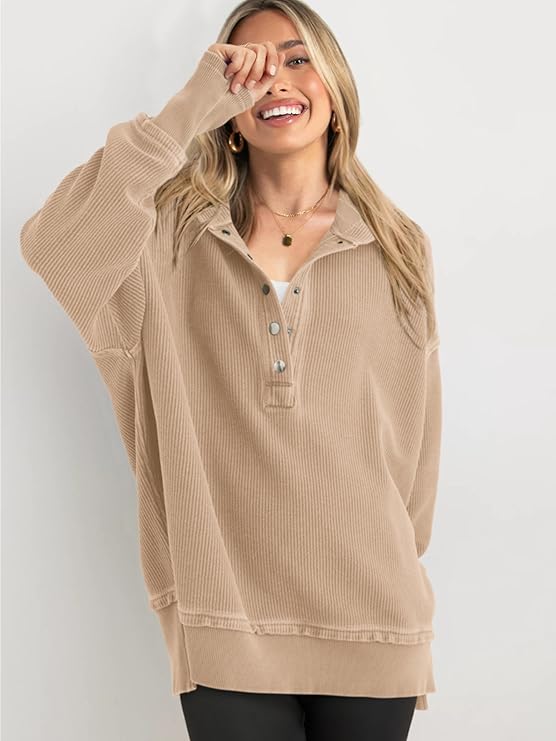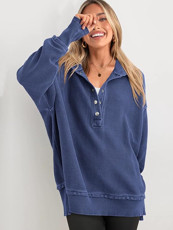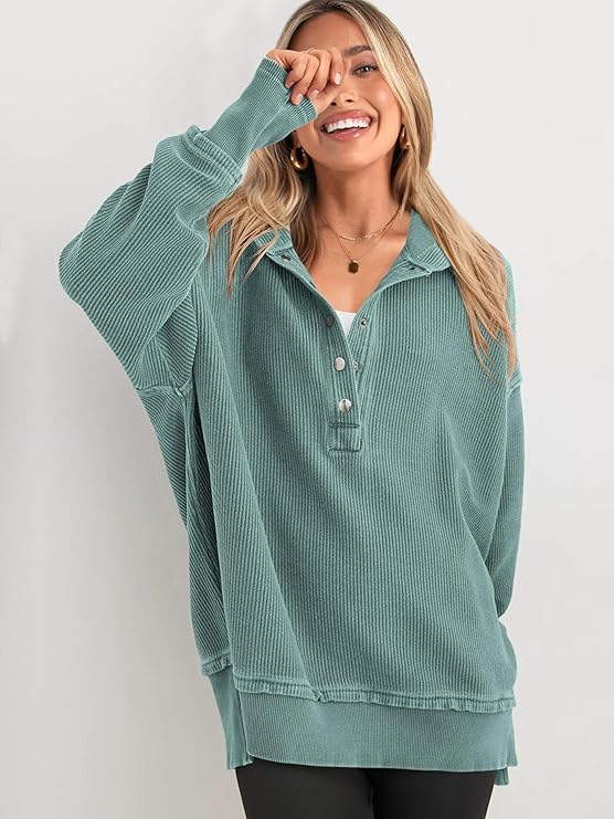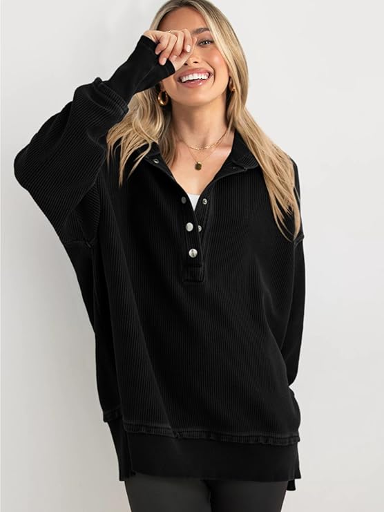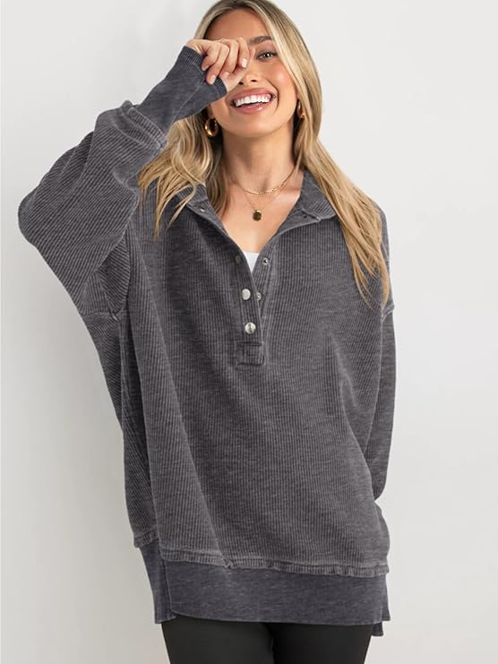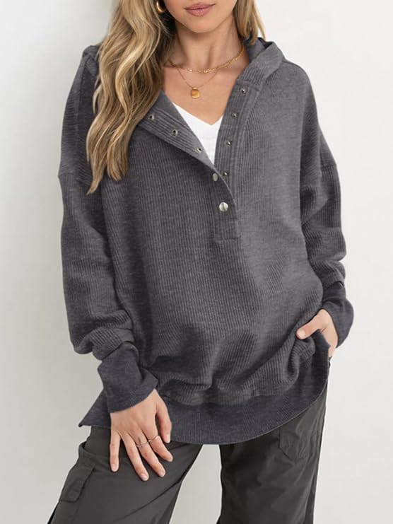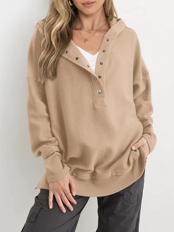 Edda Rizzo™ Volný pulovr s knoflíky a dlouhými rukávy