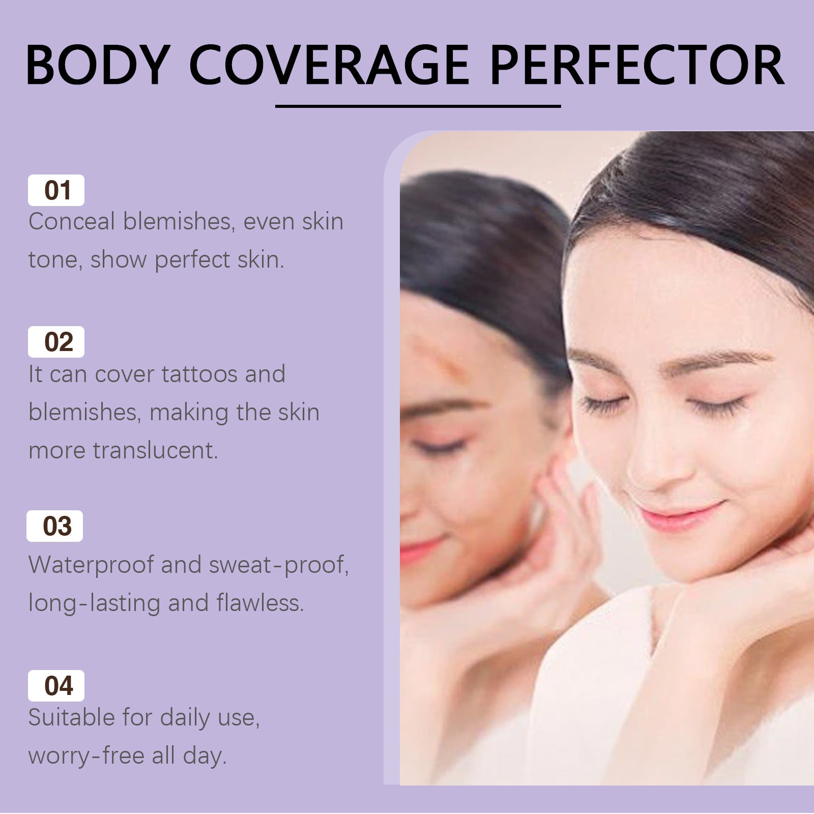 ✔ Kryje nedokonalosti: Tetování, jizvy, žilky a zabarvení zmizí bez námahy pro dokonalý vzhled.