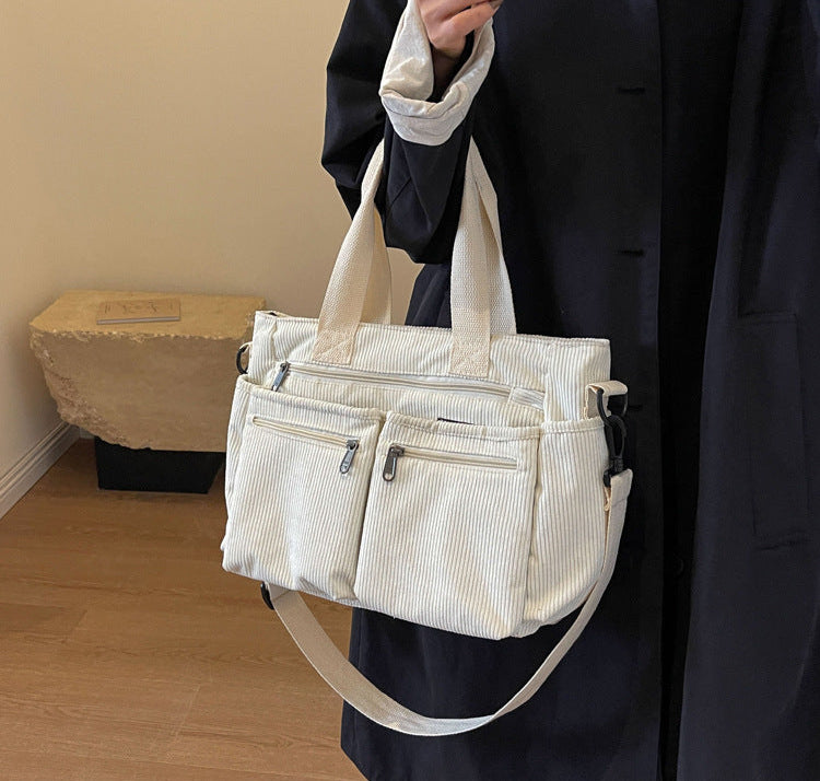 Tato módní taška je navržena s ohledem na všestrannost a je vybavena třemi praktickými předními kapsami na zip, 1 zadní, 2 bočními a prostornou hlavní přihrádkou na všechny vaše nezbytnosti. Ať už s sebou nosíte ipad, knihy, nebo věci denní potřeby, tato taška vám poskytne velký prostor a snadný přístup.