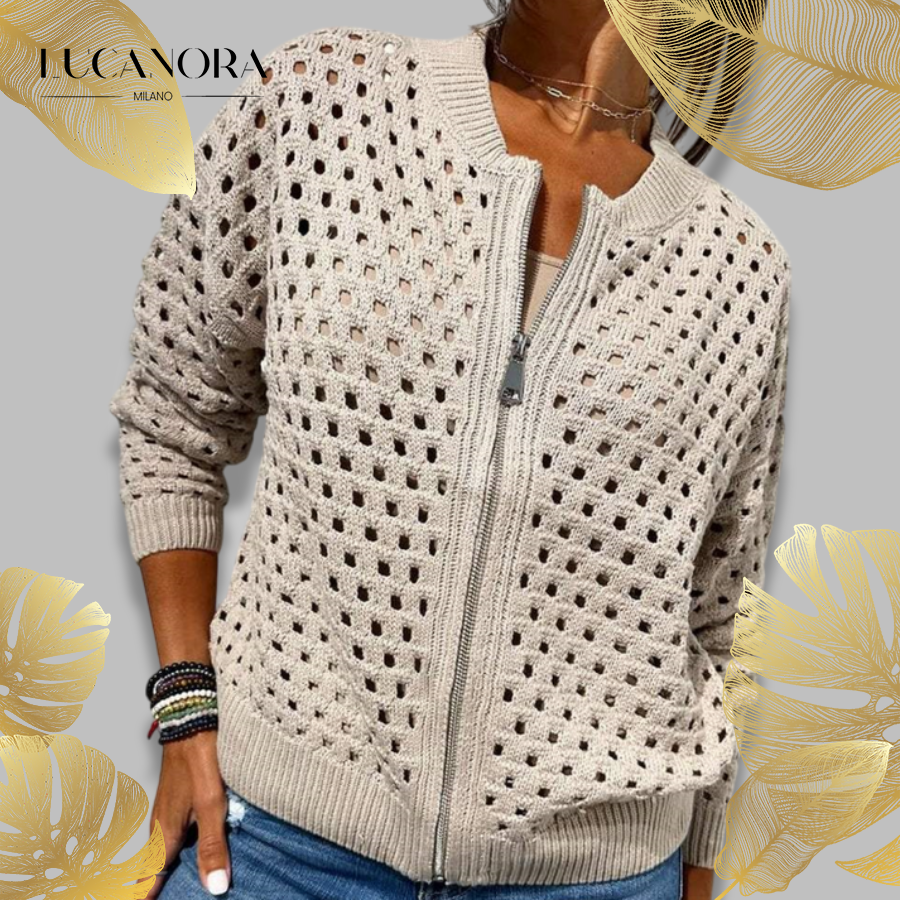 ✔ Styl bez námahy s jedinečným dutým vzorem: V této bundě nejde jen o teplo, ale také o to, abyste se vyjádřili. Jemný dutý úplet dodává eleganci a zároveň zachovává prodyšnost.