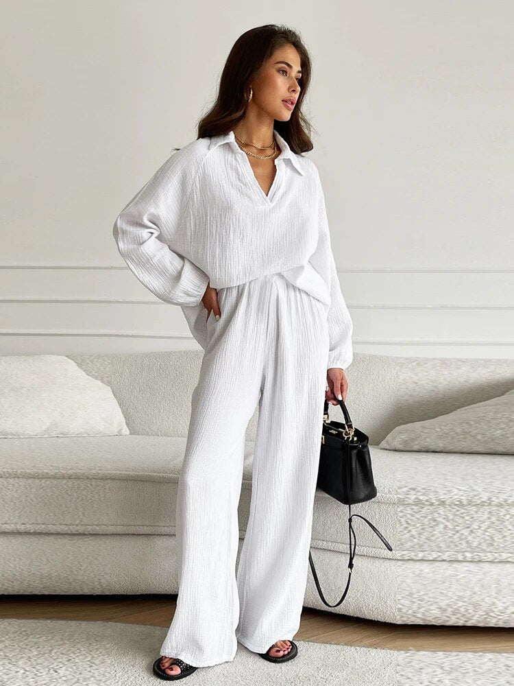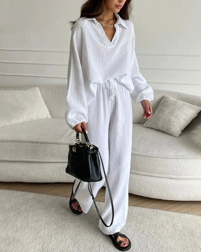 S přibývajícím listím a sychravým vzduchem si váš šatník zaslouží obměnu. Naše Felisa Set™️ je ztělesněním podzimní módní dokonalosti. Díky elegantnímu designu s výstřihem do V a příjemné tkanině je ztělesněním pohodlí a stylu a vytváří vzhled, který je stejně krásný jako samotné roční období. Tento komplet je ideální na procházky barevnými parky, vychutnávání dýňového latté s přáteli nebo útulné posezení u krbu. Je esencí podzimního kouzla, které jste hledali.