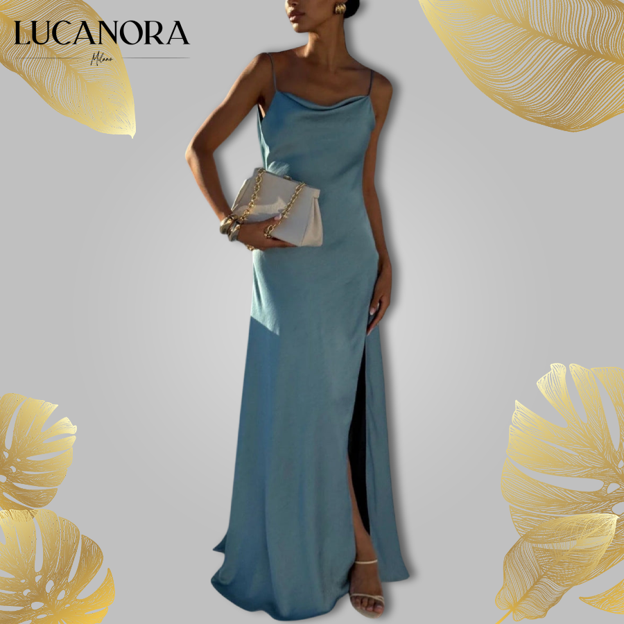 Isidora Masella™ Saténové maxi šaty s vysokým rozparkem