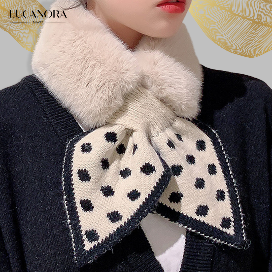 KidGlam™️ je luxusní doplněk, který ztělesňuje eleganci a teplo. Má měkký límec z umělé kožešiny, který dodává bohatství, a puntíkovaný pletený vzor. Tato šála je ideální pro boj se zimním chladem nebo pro dodání půvabu outfitům. Omotaná kolem krku zahrnuje teplo a módní půvab, pozvedne váš vzhled a zajistí vám pohodlí po celou sezónu.