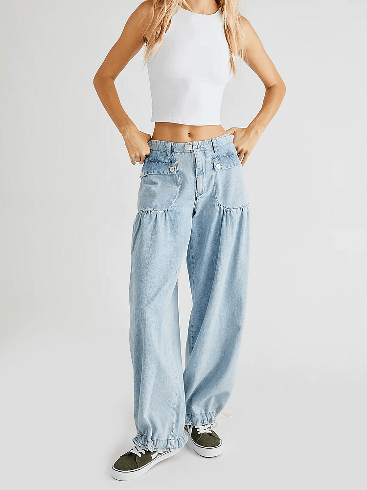 Vstupte do bezstarostného stylu s džíny, které spojují pohodlí a módu v jedinečném designu. Vyrobené z měkkého, strečového denimu, dokonale obepnou vaše křivky a zároveň umožní volný pohyb. Stahovací lemy na kotnících a prostorné přední kapsy dodávají ležérní šmrnc, který povznese jakýkoli outfit. Ať už je kombinujete elegantně, nebo volíte pohodový look, tyto džíny se stanou vaším novým favoritem.