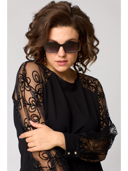 - Střih: Lichotivý střih na míru s průsvitnými dlouhými rukávy