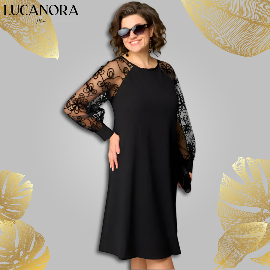 Tyto šaty jsou vaší novou tajnou zbraní. Mají elegantní siluetu ve tvaru písmene A, která kopíruje křivky, aniž by se lepila na tělo, a dodává vám nenuceně elegantní vzhled. Rukávy jsou průsvitné s jemnými krajkovými detaily, které dodávají správný nádech „jsem elegantní, ale uvolněná“, takže jsou ideální pro jakoukoli příležitost, od večeře po elegantní zahradní party.