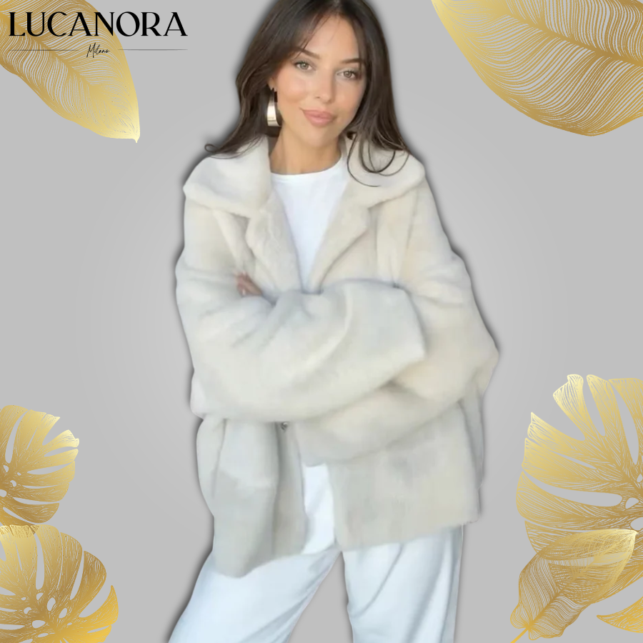 Vstupte do nepřekonatelného pohodlí a elegance s plyšovým kabátkem Loretta Parisi. Jeho měkký, kvalitní materiál působí jako teplý objetí, zatímco volný střih zajišťuje pohodlný pohyb. Ideální na zimní dny, tento univerzální kabátek dodá každému outfitu šmrnc, a vy se budete cítit pohodlně a sebevědomě po celou sezónu.