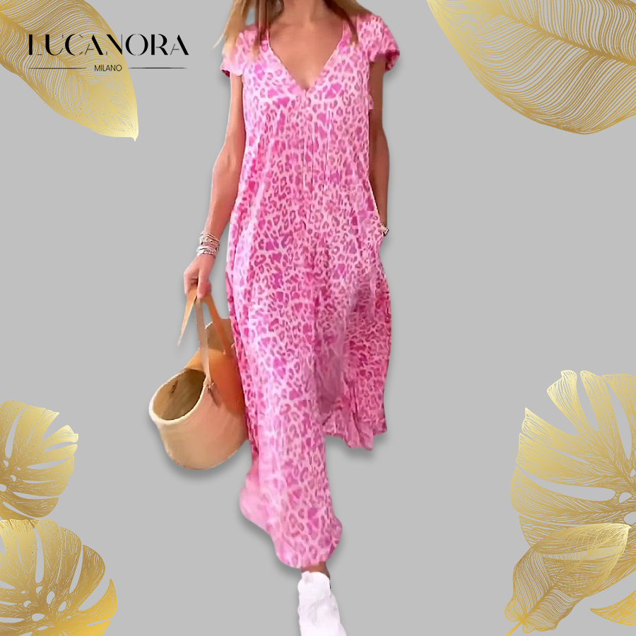 Luisa Fabbri™ Dlouhé šaty s potiskem a krátkým rukávem do V