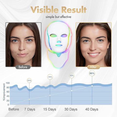 Nasaďte si ji na 15–30 minut, nastavte jas a barvu podle své nálady a nechte fototerapii působit. Po 4 až 6 týdnech pravidelného používání zaznamenáte hladší tón pleti, vybledlé skvrny a zářivý vzhled. Je to jako návštěva lázní v rámci vaší večerní rutiny.