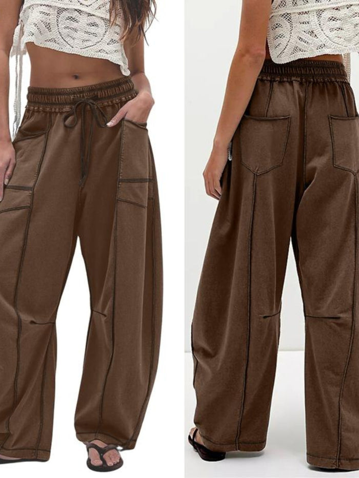 Mají ultra-uvolněný baggy střih s širokými nohavicemi, které padnou přesně tak, jak mají, pohodlný elastický pas se smockováním a stahovací šňůrkou, aby vám kalhoty seděly přesně tak, jak chcete. Ať už jdete na nákup, relaxujete u kávy nebo se jen tak potloukáte, tyto kalhoty dokonalým způsobem kombinují styl a pohodlí.