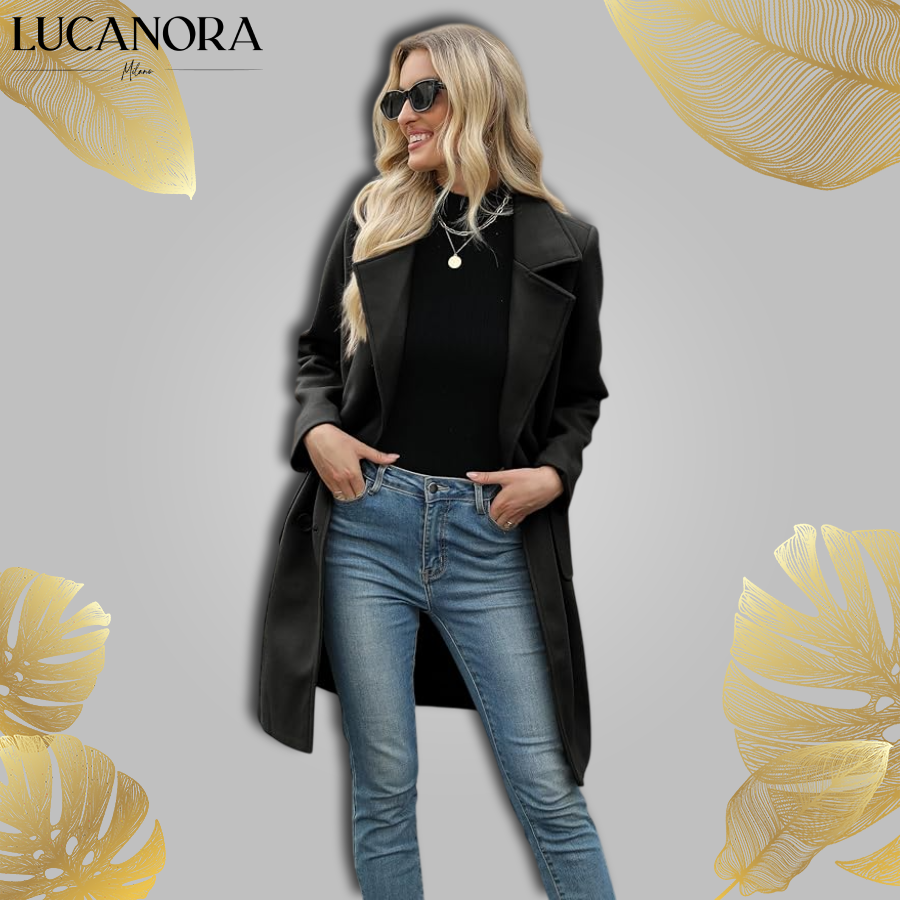 ✔ Středně dlouhý střih pro dokonalé zakrytí: Díky své středně dlouhé délce kabát padne přesně na správné místo – je dostatečně dlouhý, aby vám zahřál stehna, ale ne tak dlouhý, aby se táhl po zemi nebo působil objemně.