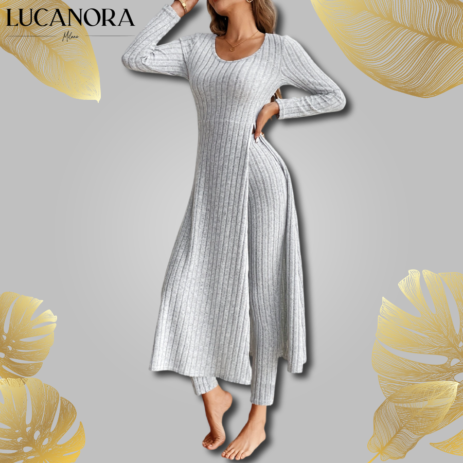 ✔ Univerzální pro každou příležitost: Tento set se hodí jak pro „pohodlný den doma“, tak pro „brunch s přáteli“. Zkombinujte ho s teniskami nebo nazujte lodičky – vždy bude vypadat skvěle. Díky čistým liniím a neutrálním tónům se k němu budete vracet znovu a znovu.