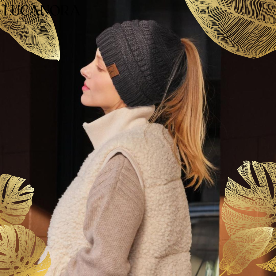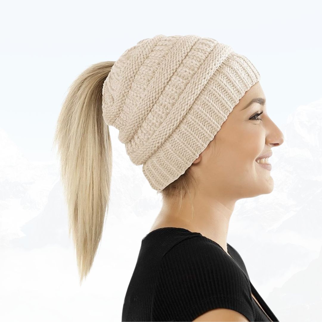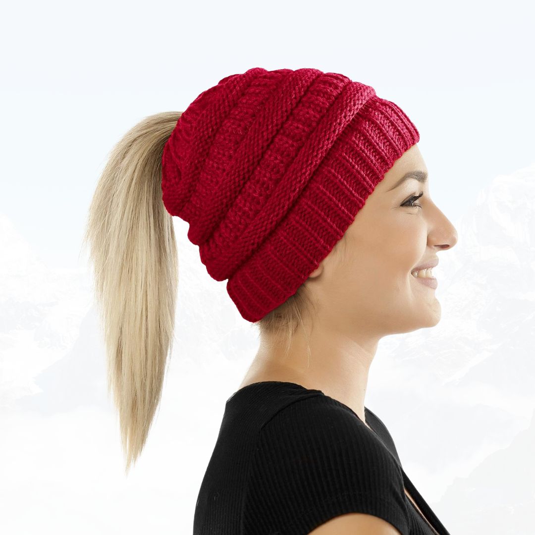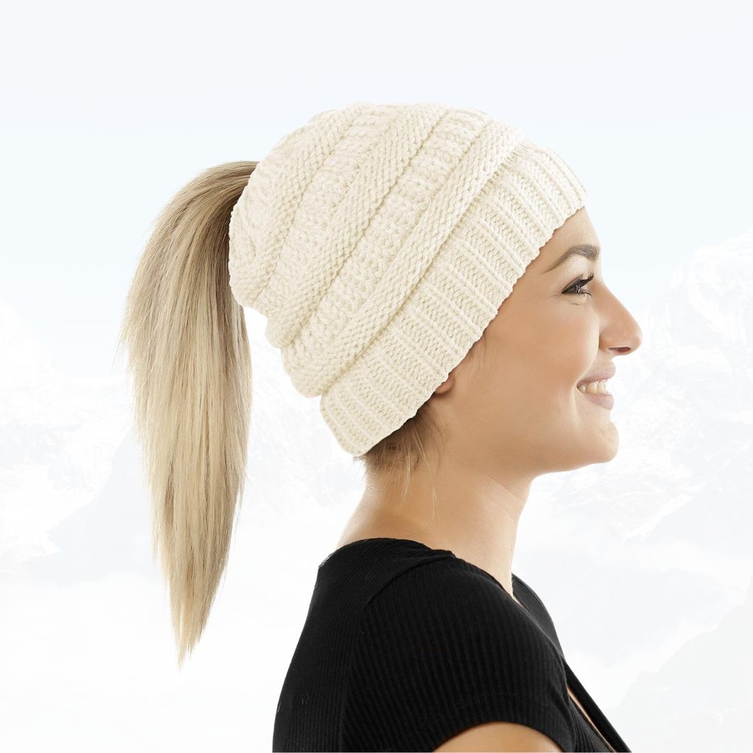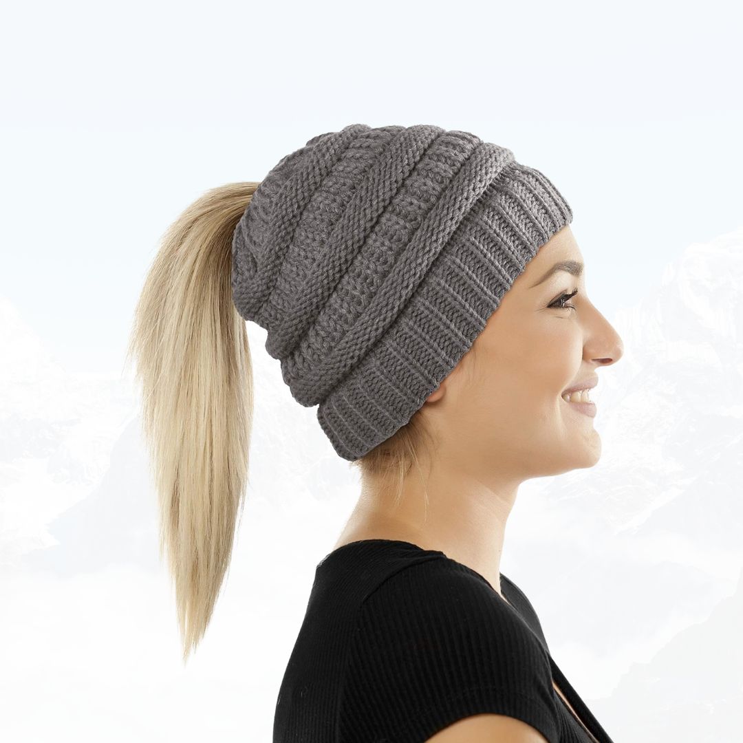 PonyBean™ Dámská pletená čepice s otvorem na culík