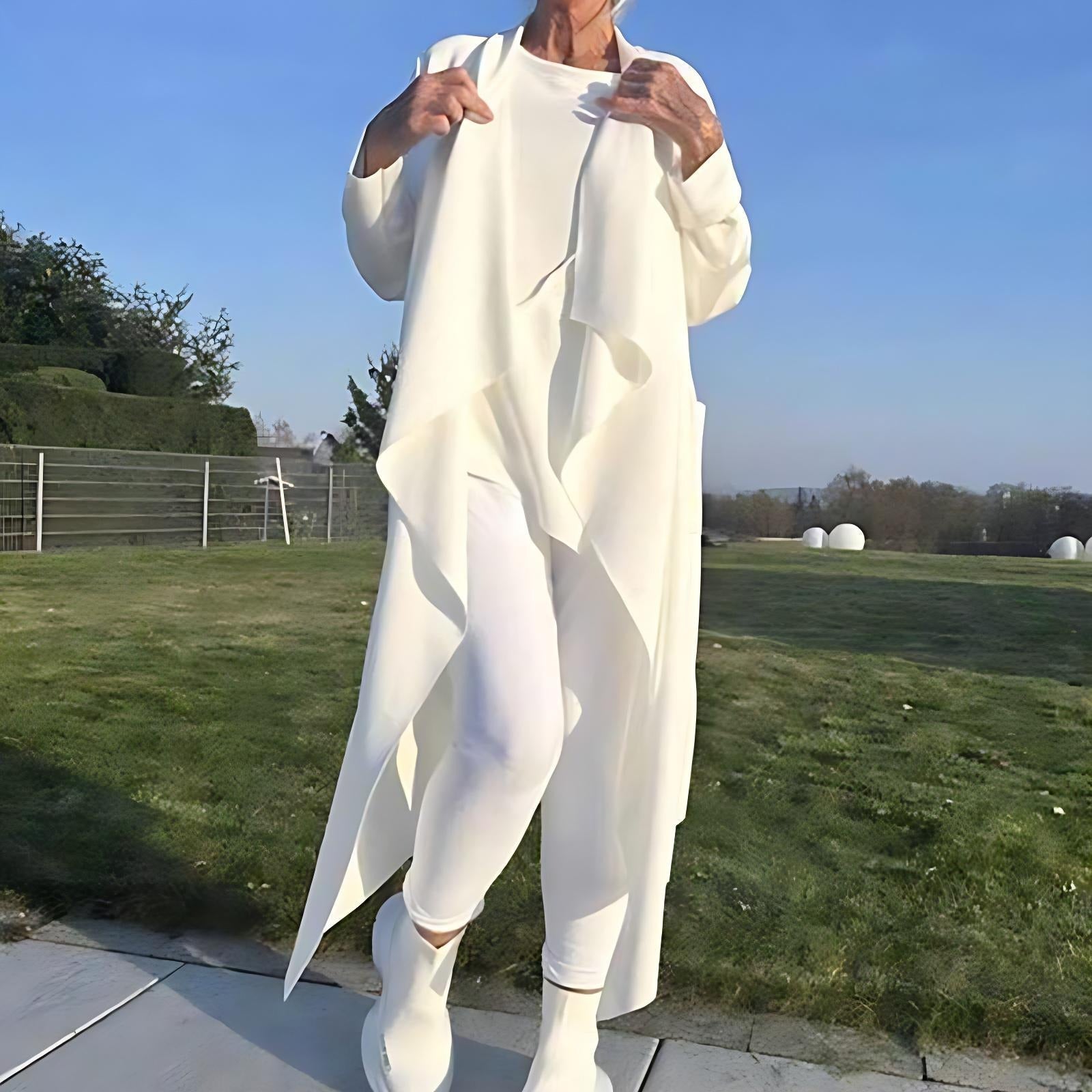 Díky otevřenému přednímu dílu a nepravidelnému střihu vytváří elegantní, splývavou siluetu, která laskavě kopíruje vaše křivky – ať už ji hodíte přes džíny nebo ji obléknete přes elegantní šaty. Je to ten typ kousku, který vám dodá elegantní vzhled.
