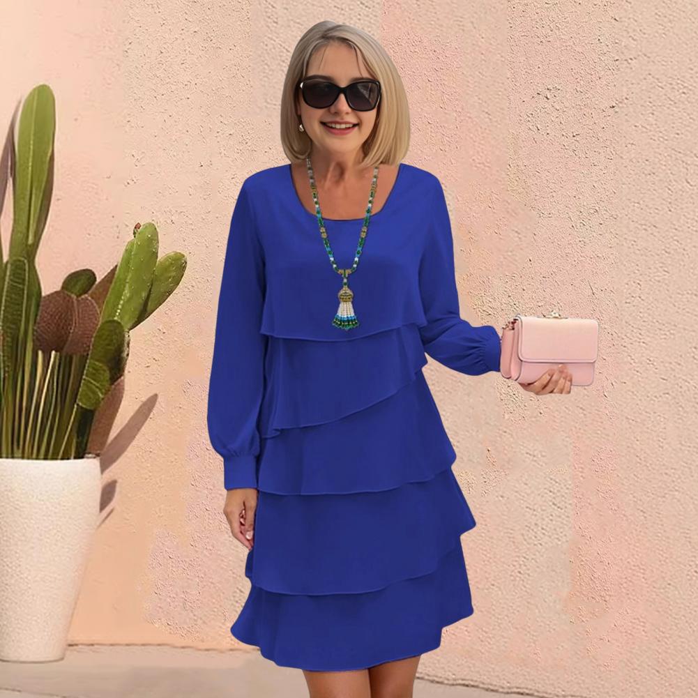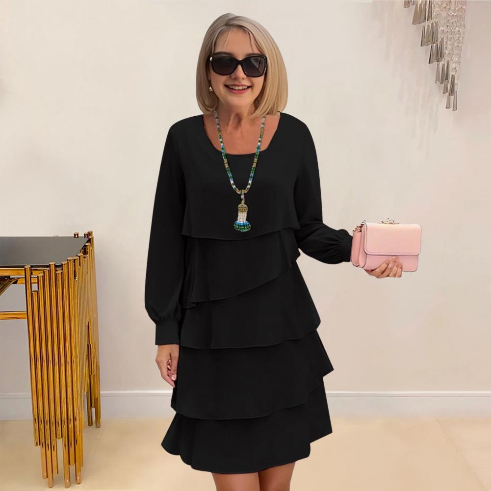Tyto šaty jsou vaší novou volbou pro dny, kdy chcete vypadat roztomile. Mají vrstvené volány, které kaskádovitě padají po sukni a dodávají vám jemný pohyb a lichotivou siluetu, zatímco dlouhé rukávy s jemnými elastickými manžetami poskytují dostatečné zakrytí pro chladnější větry.