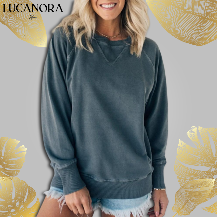 Tento svetr se stane vaším novým oblíbeným kouskem pro chladné dny, kávové pauzy nebo jen tak na lenošení. Je vyroben z měkkého materiálu, který vám poskytne správnou pružnost, aniž by ztratil tvar. Žebrovaná textura dodává vizuální zajímavost podél výstřihu, boků, manžet a lemu, čímž dává jemný designový nádech tomu, co by jinak mohl být jen další obyčejný svetr.