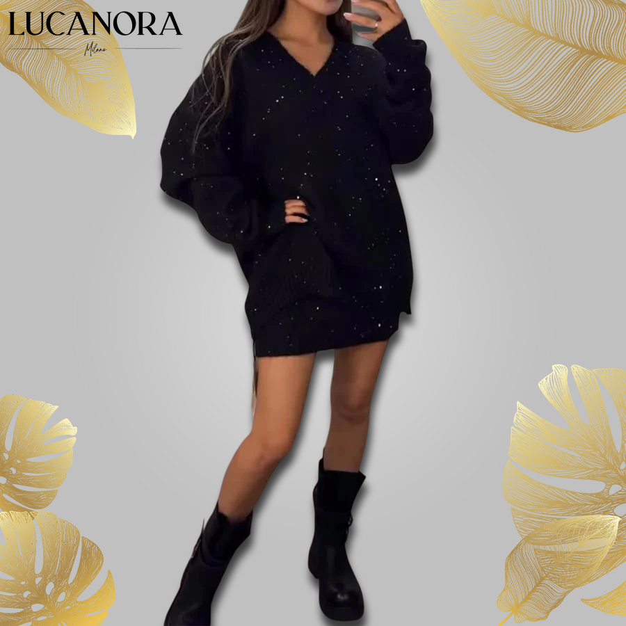 ✔ Měkká třpytivá pletenina: Svetr a sukně jsou ušity z jemně třpytivé pleteniny, která odráží světlo na všech správných místech, takže budete vypadat elegantně i při běžných pochůzkách.