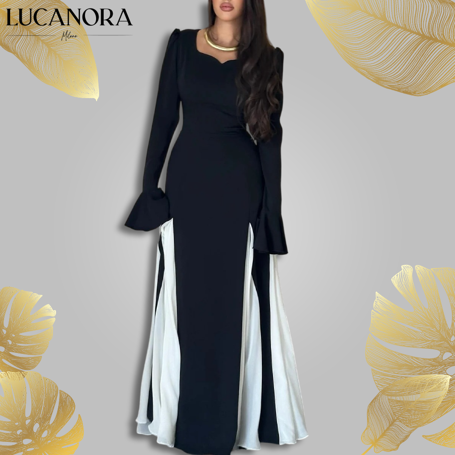Uliva Baldacci™ Černo-bílé maxi šaty s dlouhým rukávem