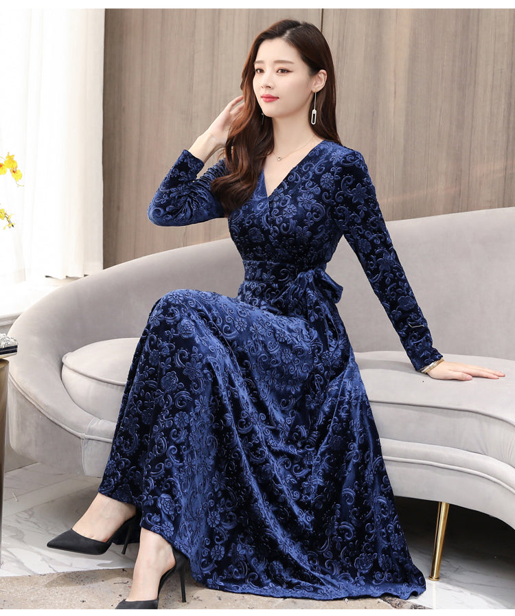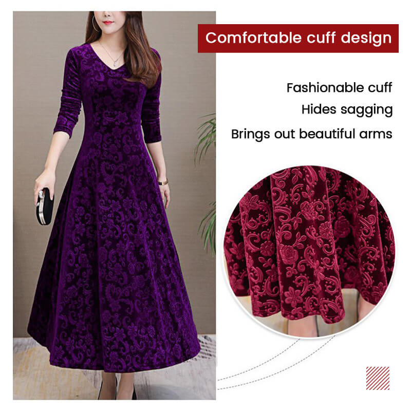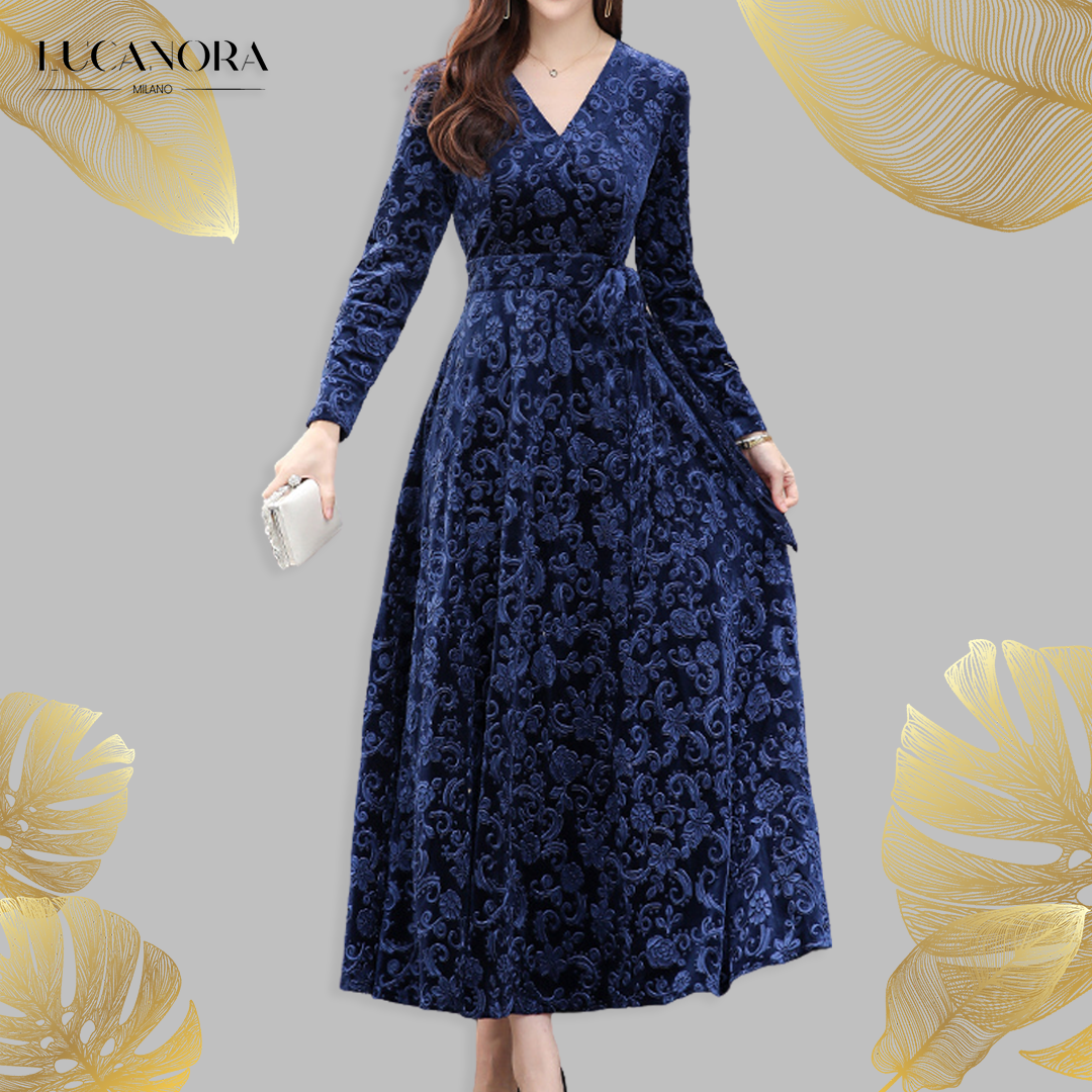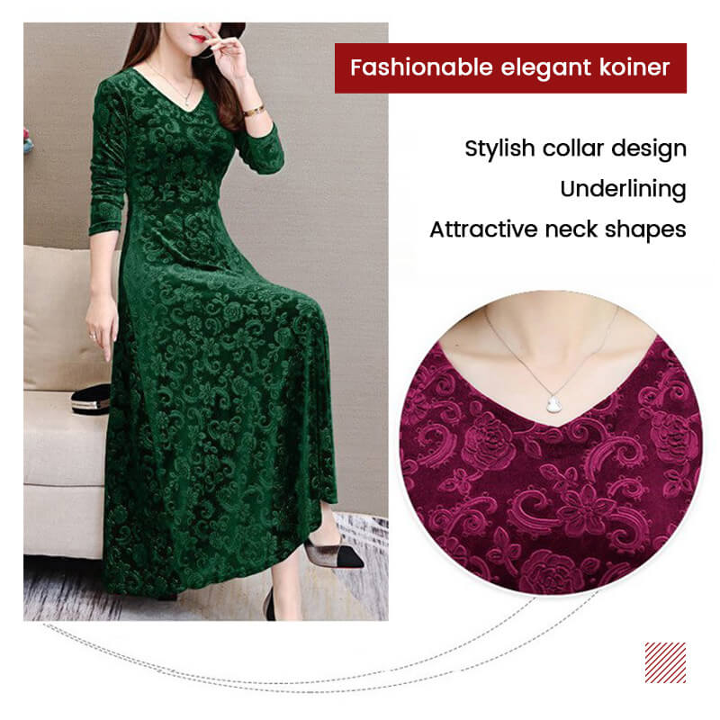 Tyto luxusní šaty jsou ztělesněním sofistikovanosti a stylu, ideální pro ty, kteří chtějí zanechat trvalý dojem. Tyto šaty, vyrobené z nádherné sametové tkaniny, vyzařují opulentnost a pohodlí. Díky sytým, bohatým barevným variantám se budete cítit jako královská rodina a měkká, plyšová textura vás bude objímat vnitřní elegancí.