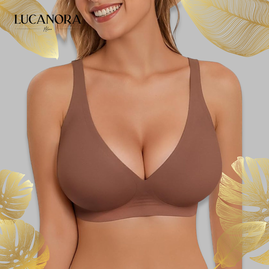 ✔ Hladký, lichotivý tvar: Tato podprsenka vám pokaždé dodá bezešvý „téměř neviditelný“ vzhled. Hluboký výstřih do V a lehce vycpané košíčky zdůrazňují váš přirozený tvar, aniž by působily objemně.