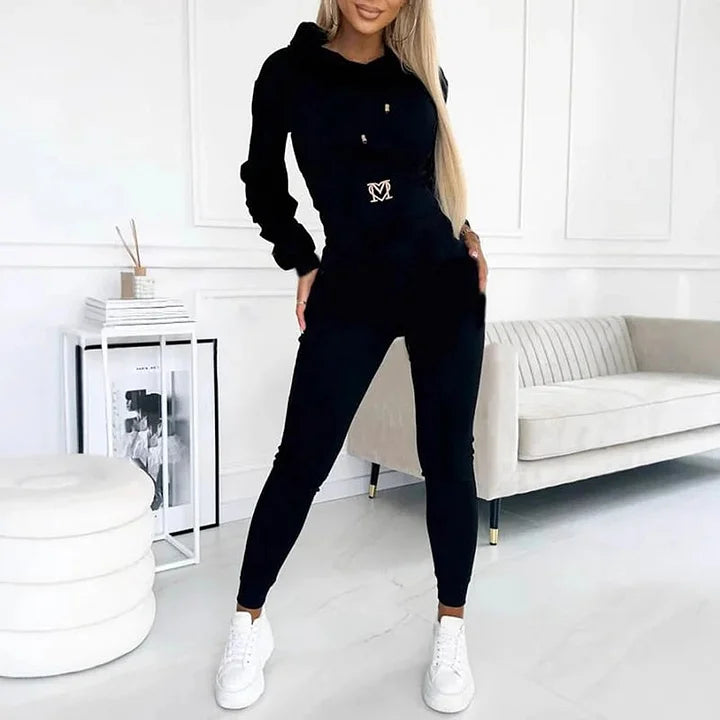 Je to vaše nová oblíbená kombinace, která je stejně pohodlná jako vaše oblíbené domácí oblečení, ale mnohem stylovější. Díky slim fit mikině s kapucí, která je akorát zkrácená, a joggerům s vysokým pasem, které perfektně sedí, tento dvoudílný set bez námahy kombinuje módu a funkčnost.